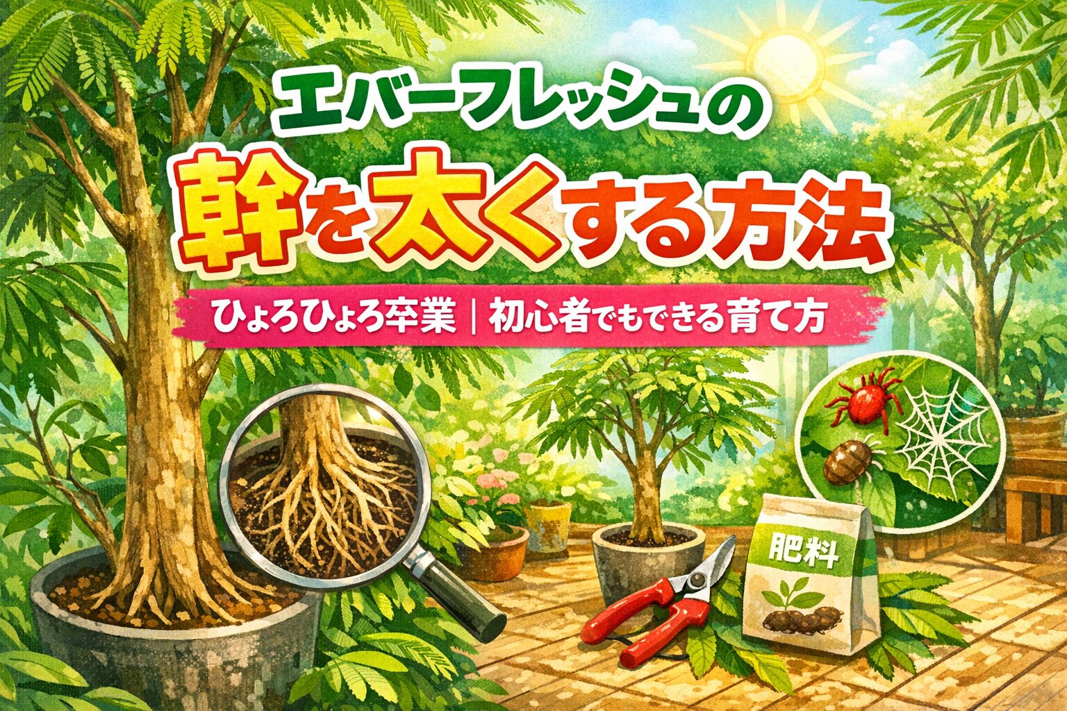 エバーフレッシュを育てていると、「幹がひょろひょろ」「徒長して見た目が頼りない」「どうしたら幹を太くできるの?」って不安になりますよね。あなたのそのモヤモヤ、すごく分かります。