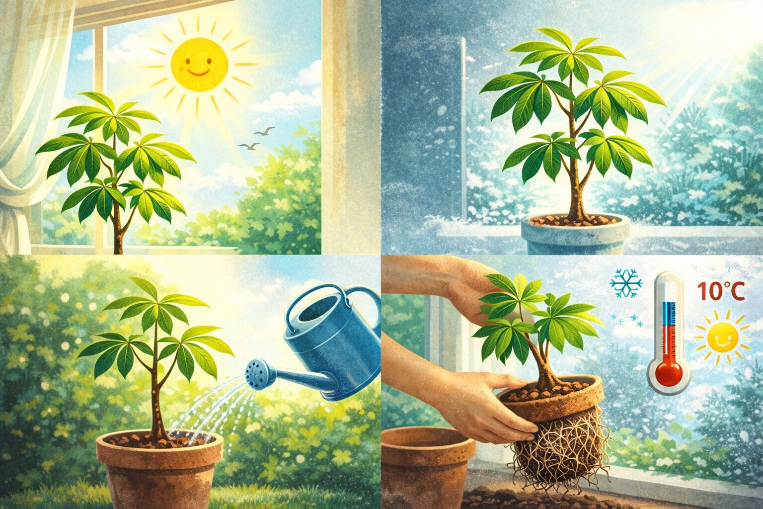 この記事では、エバーフレッシュの幹を太くするために欠かせない日当たりと置き場所、水やりの乾湿メリハリ、根腐れを避ける管理、根詰まりの見分けと植え替え、剪定と切り戻しの考え方、肥料の使い方、葉水での湿度管理、害虫のハダニやカイガラムシ対策、葉焼けの回避、冬越しの温度のコツまで、まとめて整理します。